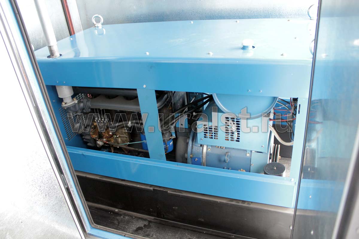 Кузов-фургон представляет собой каркасную сварную конструкцию, наружная обшивка – стальной лист, в качестве утеплителя используется пенополистерол. В зависимости от назначения и климатических условий эксплуатации толщина стеновых панелей может быть от 30 до 80 мм. Внутренняя отделка кузова-фургона выполнена промышленным пластиком. Нижняя часть стен агрегата ремонтно-сварочного обшита оцинкованным стальным листом, пол покрыт рифленой резиной. Такой вариант отделки более практичен для ремонтных работ. Окно с двойным остеклением и окантованное резиновым профилем расположено на скосе фургона. Для увеличения тепло- и шумоизоляции проемы дверей и люков окантовываются двойным уплотнителем.