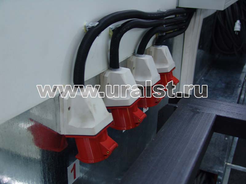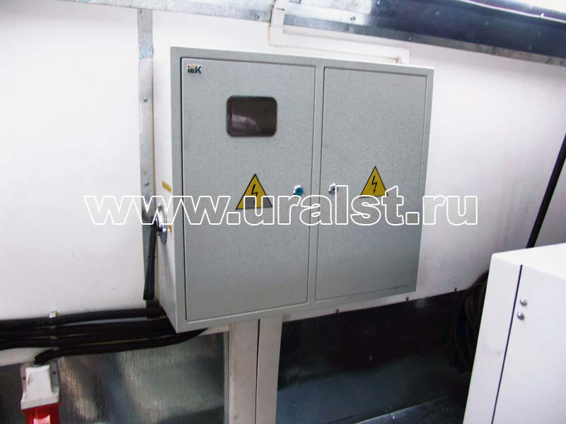 Электрооборудование передвижной мастерской питается от внешнего источника, для подключения которого предусмотрен специальный разъем, либо от установленной внутри кузова-фургона дизельной электростанции. Дизельная электростанция служит для получения трехфазного электрического тока напряжением 400 В. Ремонтно-сварочный автомобиль-фургон комплектуются необходимым количеством светильников: обычно используются пыле и влагозащищенные люминесцентные светильники, со степенью защиты IP 54, IP 65, а также плафоны салона с выключателем на корпусе. Возможна установка специальных светильников, исходя из требований для различных классов пожаровзрывобезопасности помещений. Проводка выполняется медным кабелем расчетного сечения открыто в ПВХ коробах, которая сводится в отдельный электрощит и заземляется.