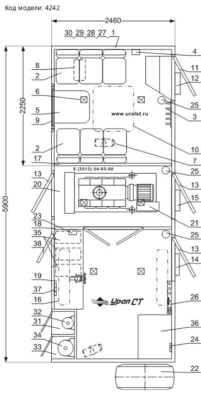 Планировка и расположение оборудования произведены с учетом максимально полезного использования пространства масерской и удобства работы персонала. Все оборудование и инструмент надежно закреплены на штатных местах.