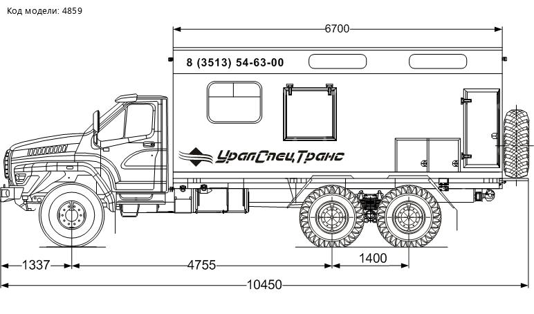 Кузов-фургон представляет собой каркасную сварную конструкцию, наружная обшивка – стальной лист, в качестве утеплителя используется пенополистерол. В зависимости от назначения и климатических условий эксплуатации толщина стеновых панелей может быть от 30 до 80 мм. Внутренняя отделка кузова-фургона выполнена промышленным пластиком. Пол покрыт рифленым автолином (резоново-пластиковое покрытие). Такой вариант отделки более практичен для ремонтных работ. Окна с двойным остеклением, окантованные резиновым профилем в кол-ве 4 шт. расположены на скосах фургона. Для увеличения тепло - и шумоизоляции проемы дверей и люков окантовываются двойным уплотнителем.