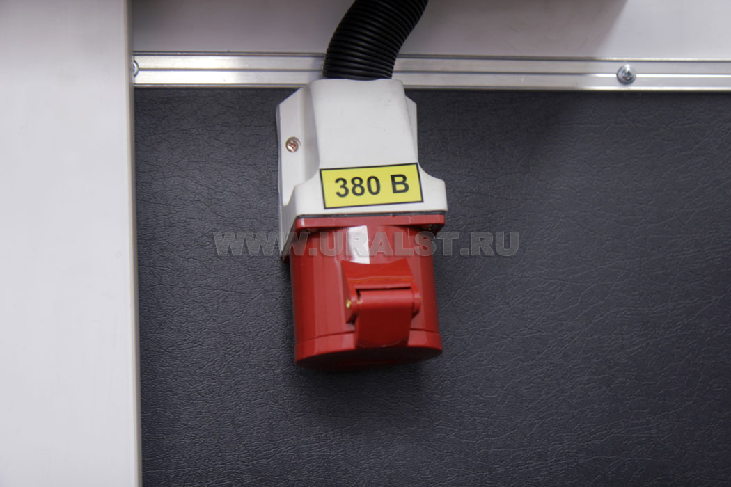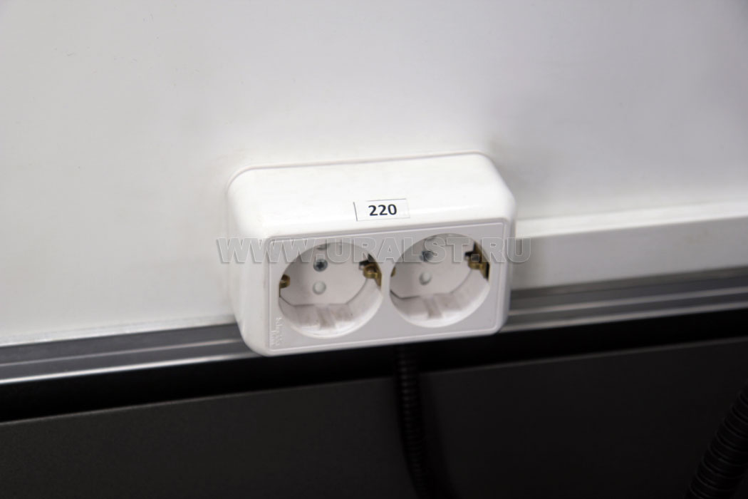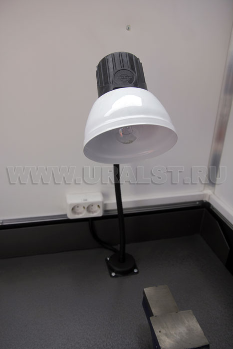 Фургон оборудован розетками для подключения потребителей 220 и 380V. Для работы в темное время суток все рабочие места фургона оборудованы плафонами освещения и настольным светильником.