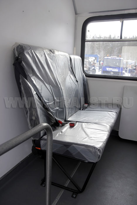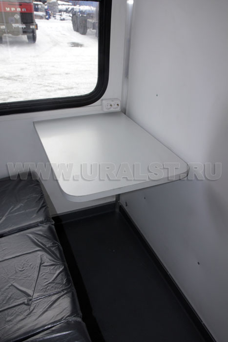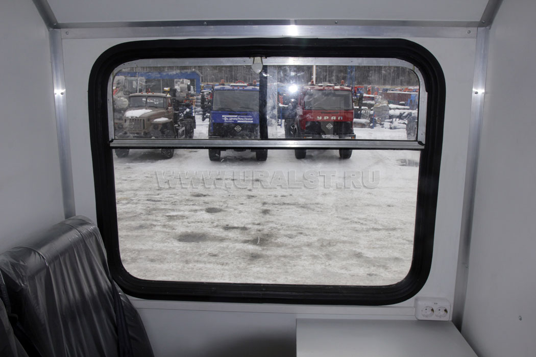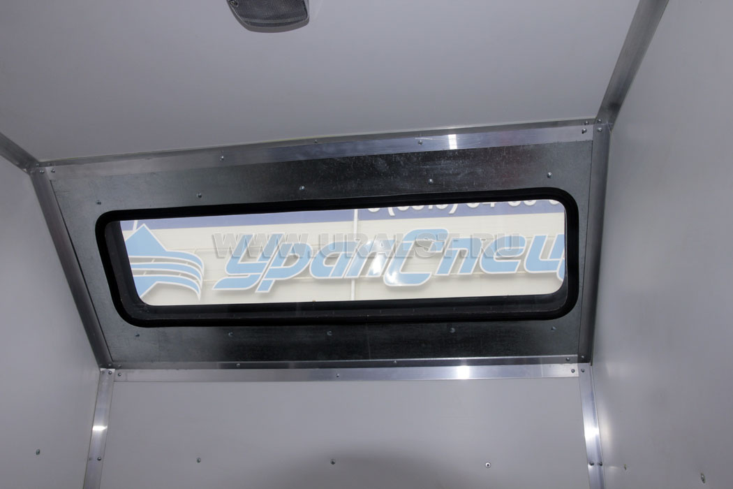 Фургон оборудован окном с форточкой с применением двойного герметичного стеклопакета и окнами двойного остекления на скосах фургона, обеспечивающими естественное освещение, вентиляцию и необходимый обзор. Окна изготовлены из травмобезопасного стекла и окантованы уплотнителем.