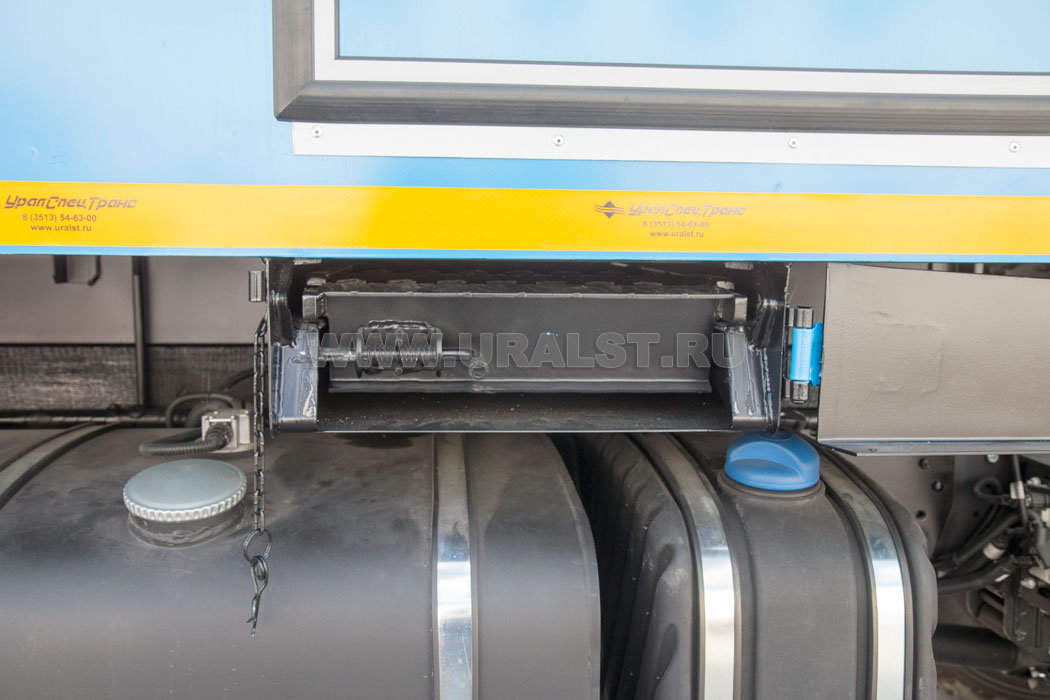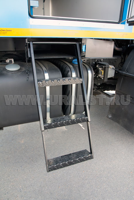 Вход в пассажирский отсек осуществляется по двухсекционной раскладной лестнице. Лестница изготавливается из трубы квадратного сечения. Удобство подъема обеспечивают широкие ступеньки, изготовленные из листового метала. В транспортном положении лестница располагается под полом кузова-фургона.