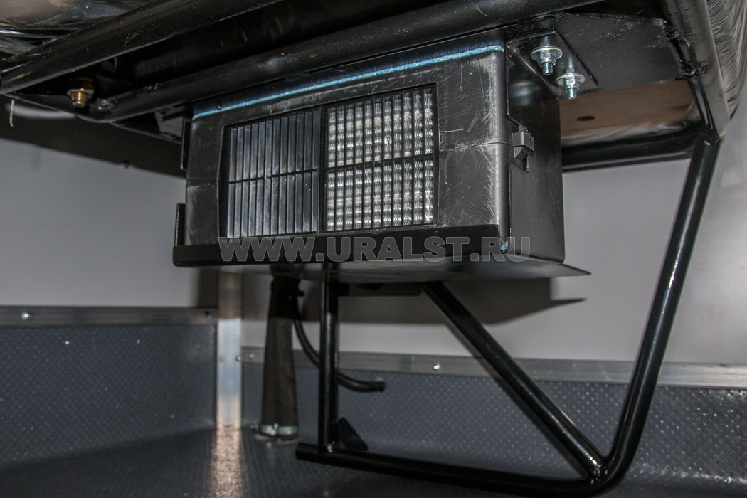 АРОК УСТ-5453 оборудован двумя независимыми друг от друга контурами отопления салона. Основной контур отопления расположен в пассажирском отсеке и работает от системы охлаждения ДВС. Дополнительный контур отопления мощностью 4 кВт является независимым и имеет отвод в отсек мастерскую, что позволяет сэкономить пространство в отсеке мастерской и отопливать не только отсек для перевозки пассажиров, но и отсек-мастерскую.