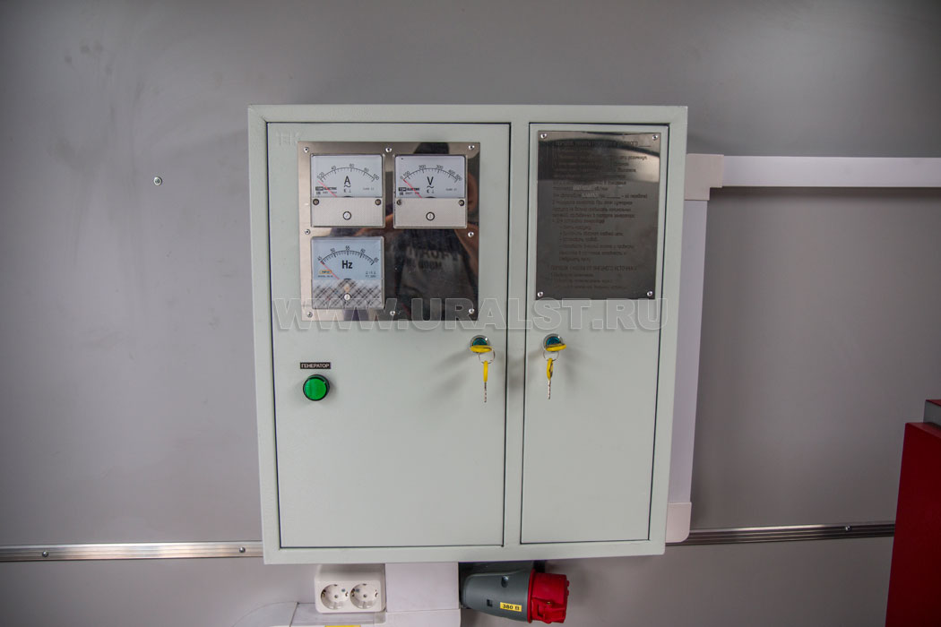 Защита потребителей и цепей 380В и 220В от перегрузок и короткого замыкания обеспечивается соответствующими автоматическими выключателями и модулем защитного отключения установленным в шкафу управления. Напряжение 24В постоянного тока подается из электрической схемы базового автомобиля.