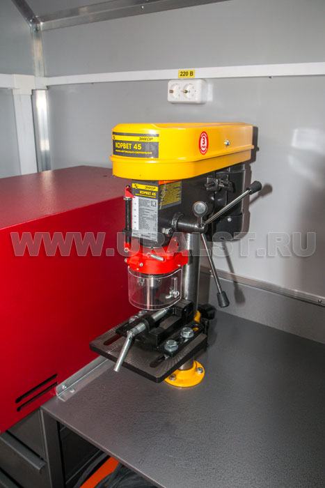 Планировка и расположение оборудования произведены с учетом максимально полезного использования пространства масерской и удобства работы персонала. Все оборудование и инструмент надежно фиксируются на штатных местах.