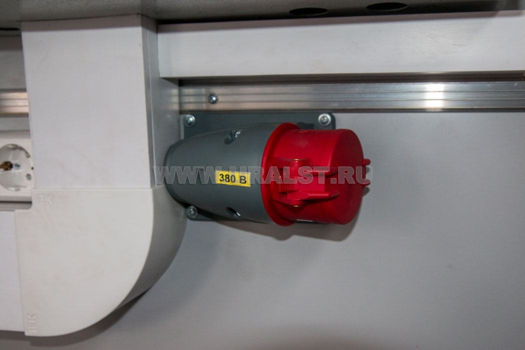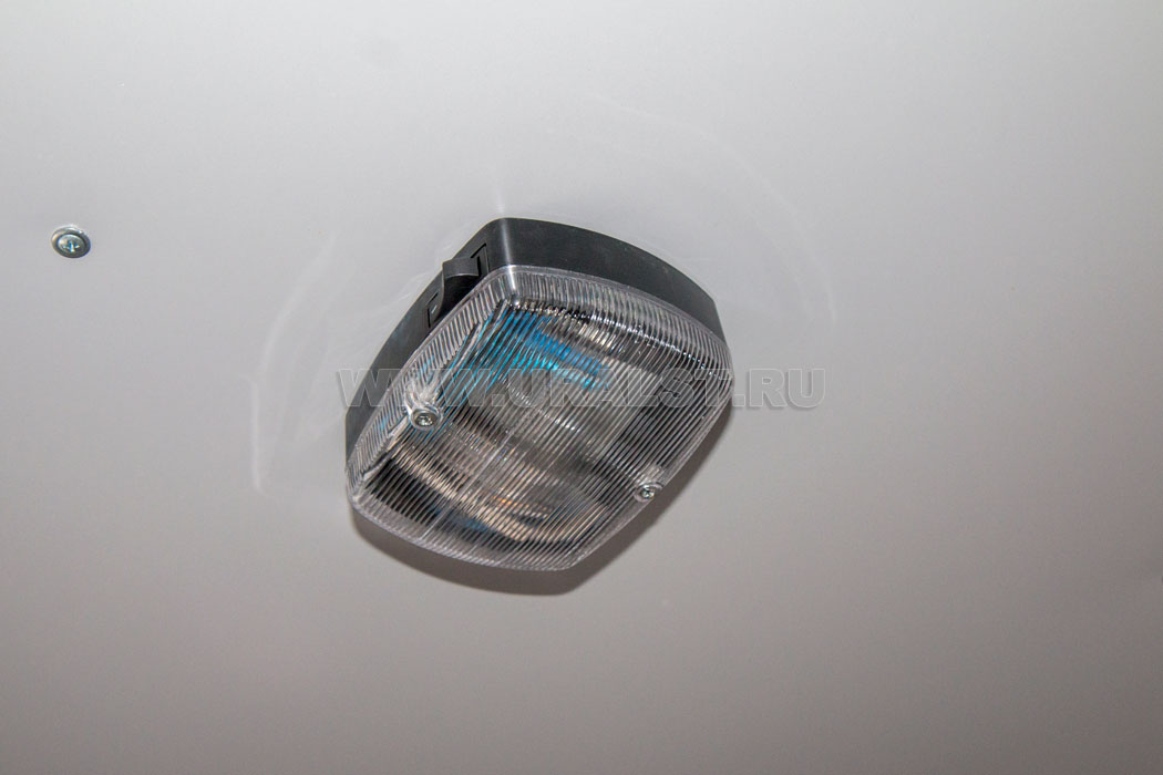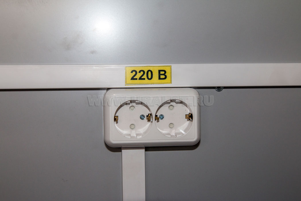 Фургон оборудован розетками для подключения потребителей 220 и 380V. Для работы в темное время суток все рабочие места фургона оборудованы плафонами освещения и настольным светильником.