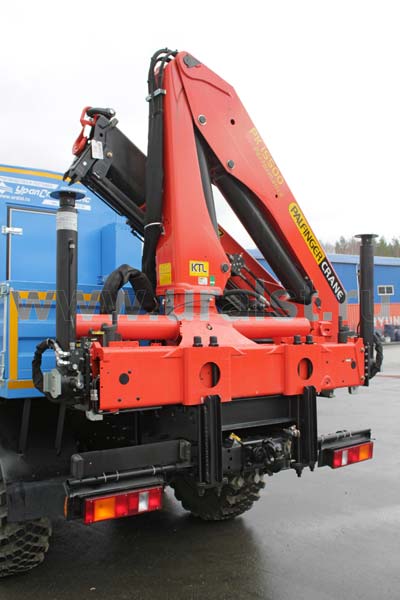 На заднем свесе Фургона смонтирован манипулятор Palfinger РK 15500А для проведения грузоподъемных работ весом до 7,3 тонн.