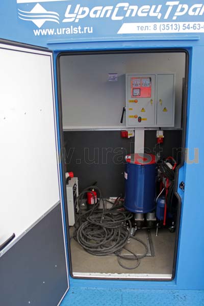 Для быстрого доступа и удобства эксплуатации насосного агрегата и сварочного выпрямителя в кузове-фургоне предусмотрены специальные люки.