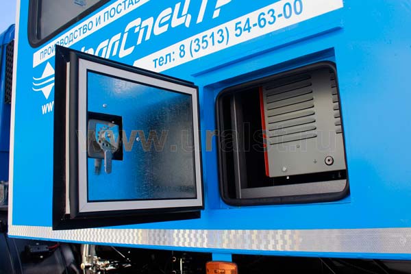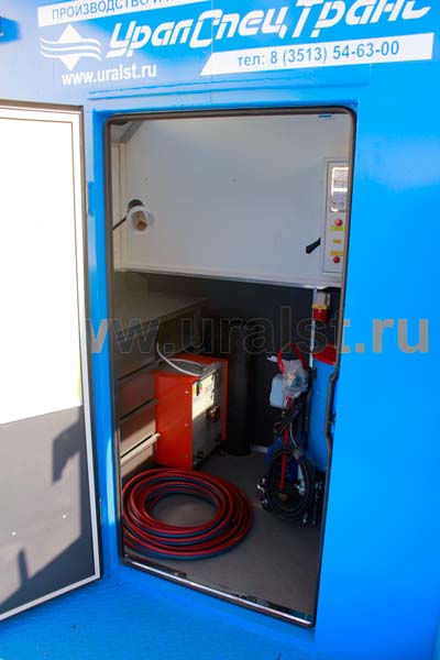 Для быстрого доступа и удобства эксплуатации насосного агрегата и сварочного выпрямителя в кузове-фургоне предусмотрены специальные люки.