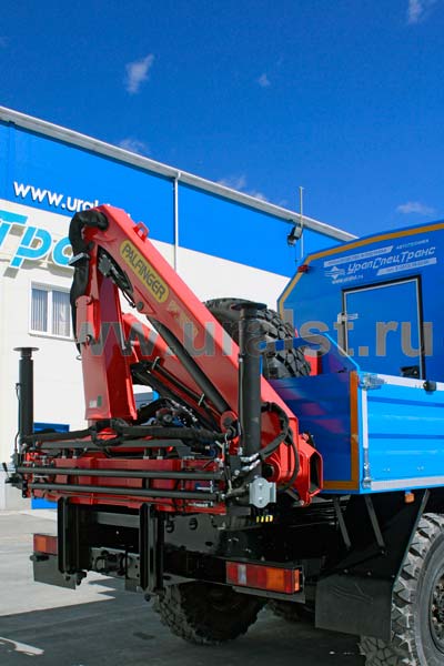 На заднем свесе агрегата ремонта и обслуживания станков-качалок Камаз установлен кран-манипулятор Palfinger PK-8500A, обеспечивающий проведение грузоподъемных работ с весом до 3,3 тонн.