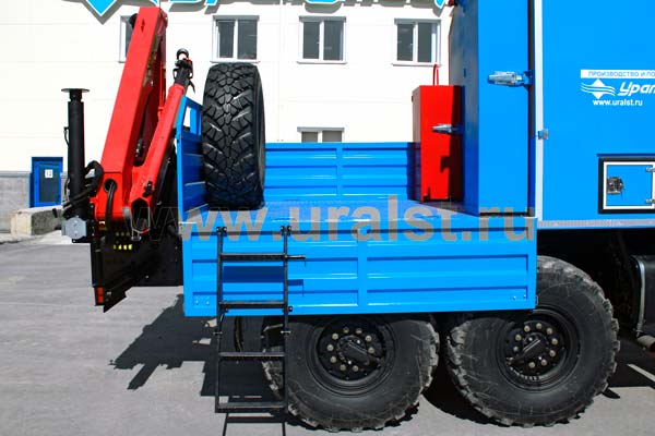 Для избежания перемещения груза во время транспортировки предусмотрены специальные петли для увязки груза. Также на площадке расположены контейнеры для транспортировки и временного хранения газосварочных баллонов. На грузовой платформе, рядом с задним бортом, расположен люк обеспечивающий доступ к размещенному под полом автофургона генератору.