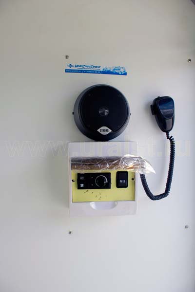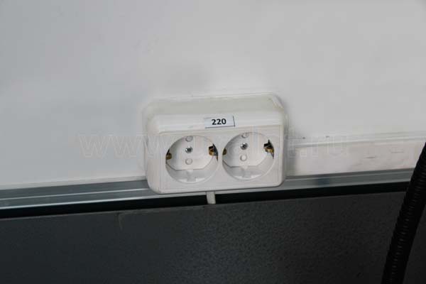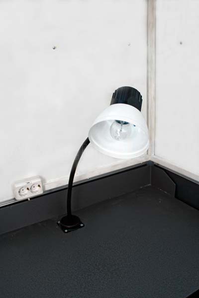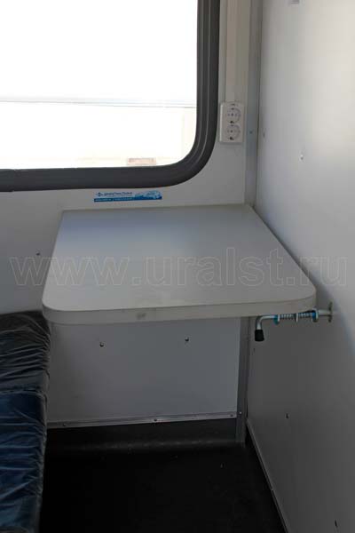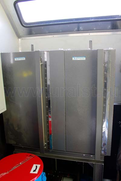 Фургон оборудован розетками для подключения потребителей 220 и 380V. Для работы в темное время суток все рабочие места фургона оборудованы плафонами освещения и настольным светильником.