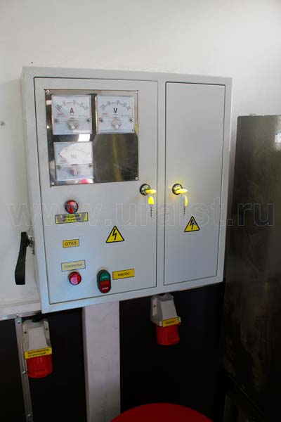 Защита потребителей и цепей 380В и 220В от перегрузок и короткого замыкания обеспечивается соответствующими автоматическими выключателями и модулем защитного отключения установленным в шкафу управления. Напряжение 24В постоянного тока подается из электрической схемы базового автомобиля.