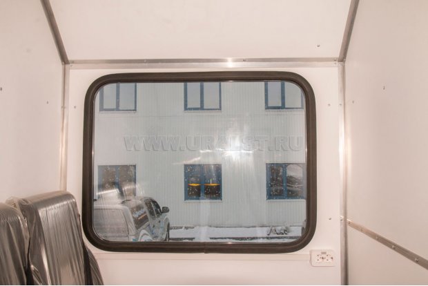 В ремонтном отсеке расположенны два окна на скосах фургона для большей освещенности рабочего места. Окна на скосах оконтованы двойным контуром высококачественного уплотнителя. В ночное время внутреннее освещение фургона осуществяется плафонами мощностью 24V.
