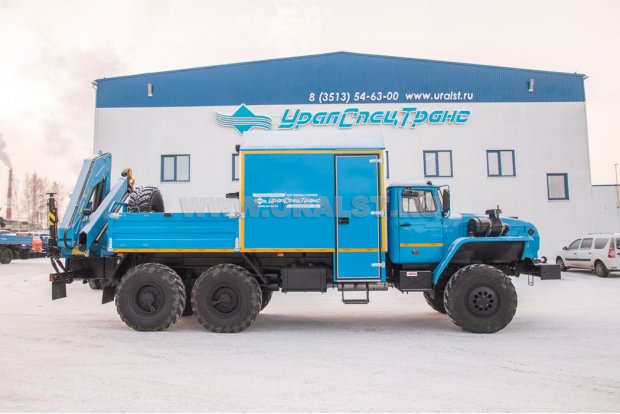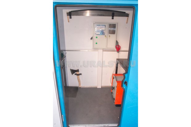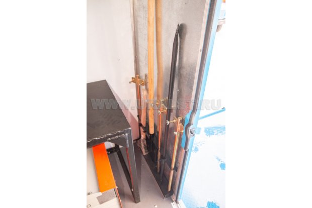 Вход в ремонтный отсек осуществляется из отсека для перевозки бригады. Агрегат ремонта и обслуживания станков-качалок (АРОК) может быть оснащен всем необходимым оборудованием и инвентарем.