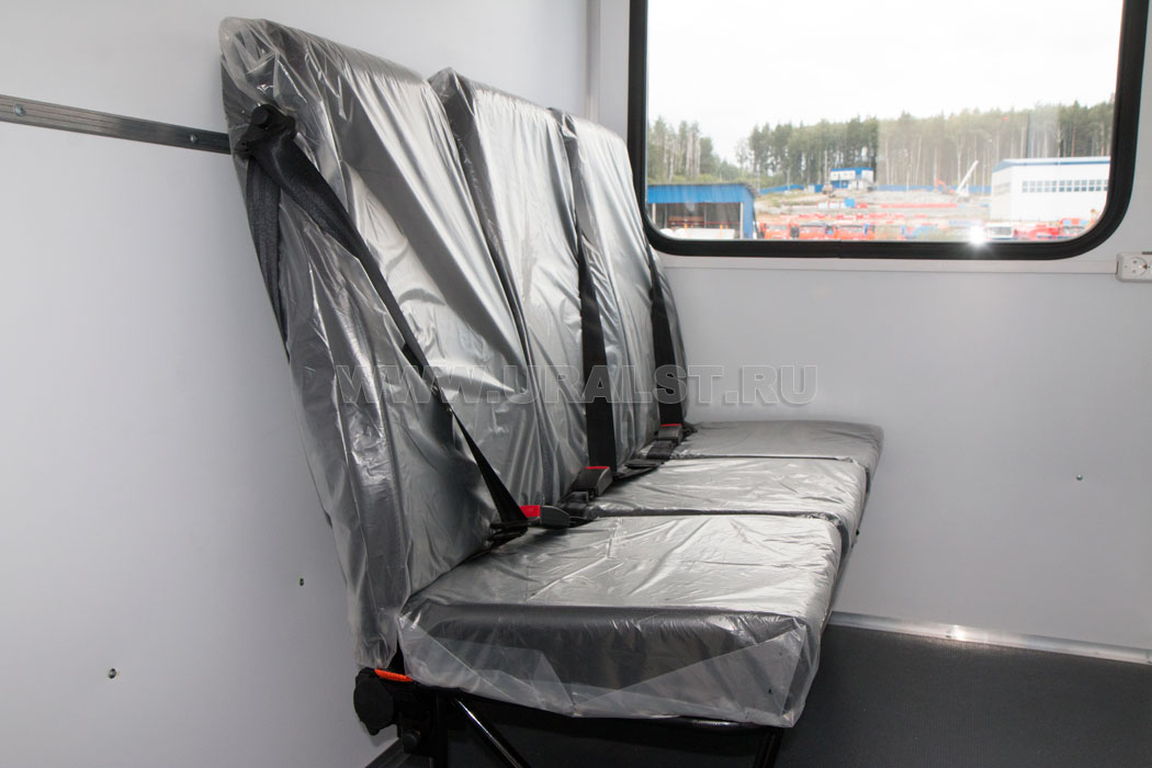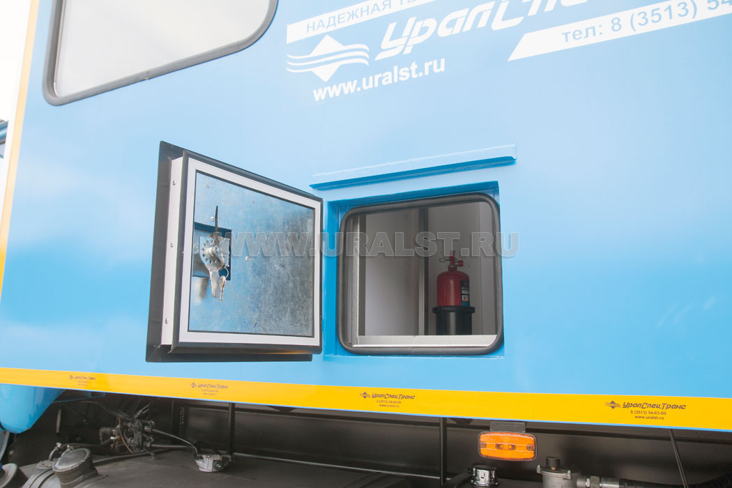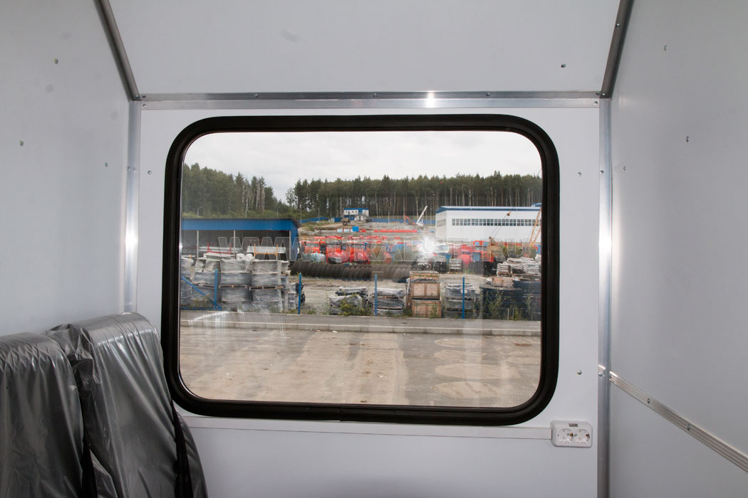 Фургон оборудован глухим окном и окнами двойного остекления на скосах фургона, обеспечивающими естественное освещение и необходимый обзор. Окна изготовлены из травмобезопасного стекла и окантованы уплотнителем.