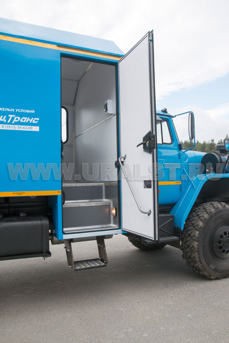 Для быстрого доступа и удобства эксплуатации сварочного выпрямителя в кузове-фургоне предусмотрены специальные люки. В полу ремонтного отсека расположен люк обеспечивающий доступ к размещенному под полом автофургона генератору.