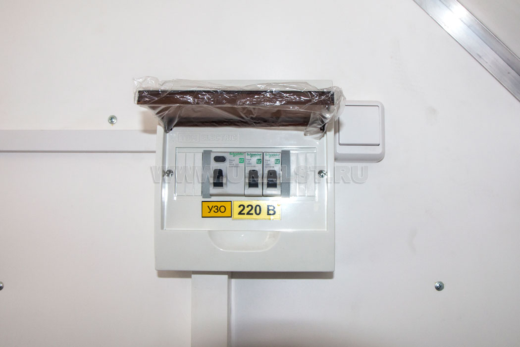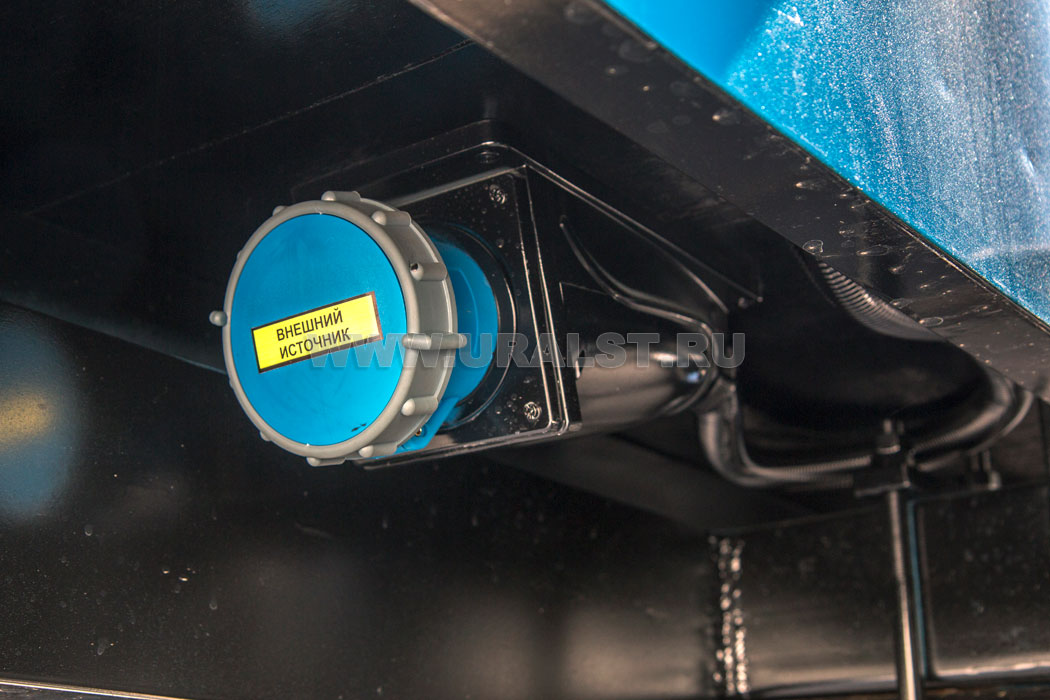 Питание фургона Столовой осуществляется от бортовой сети автомобиля (напряжение 24В постоянного тока подается из электрической схемы базового автомобиля), а также от внешнего источника питания, для подключения которого предусмотрен специальный разъем.