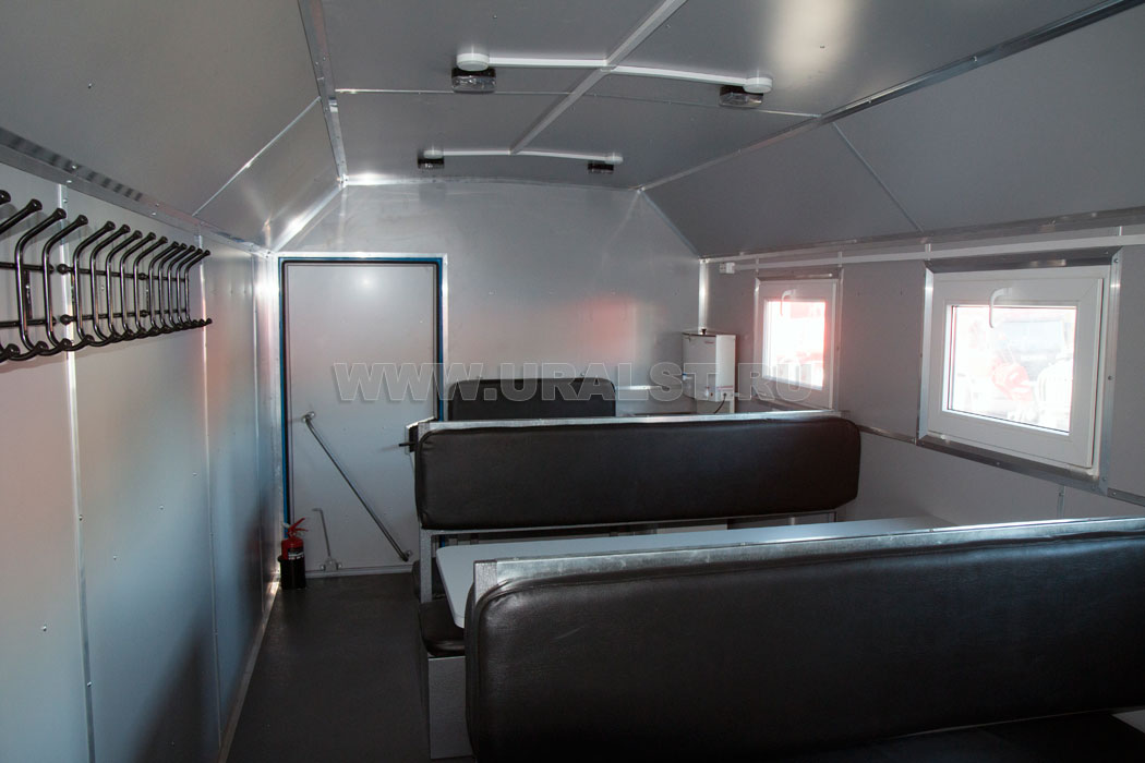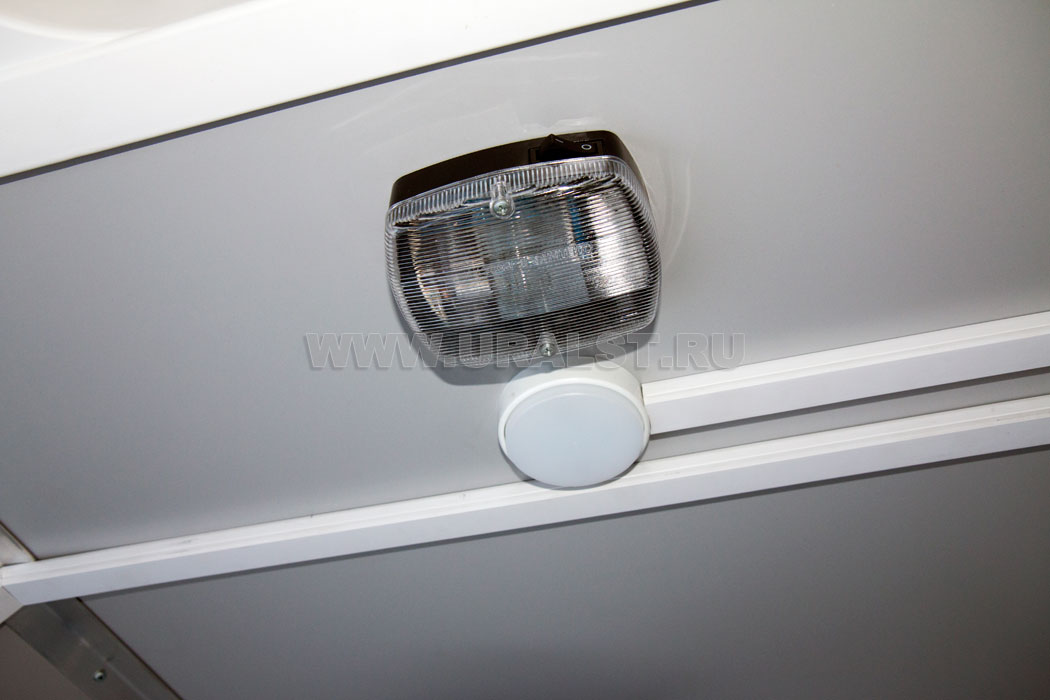 Фургон комплектуются необходимым количеством светильников: обычно используются пыле- и влагозащищенные люминесцентные светильники. Возможна установка специальных светильников, исходя из требований для различных классов пожаровзрывобезопасности помещений.