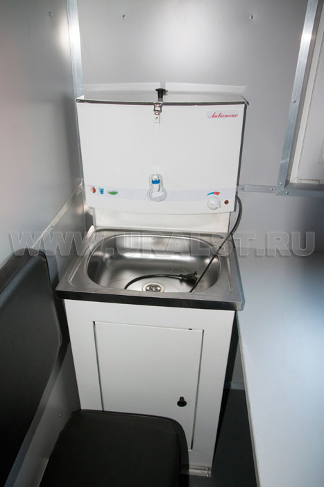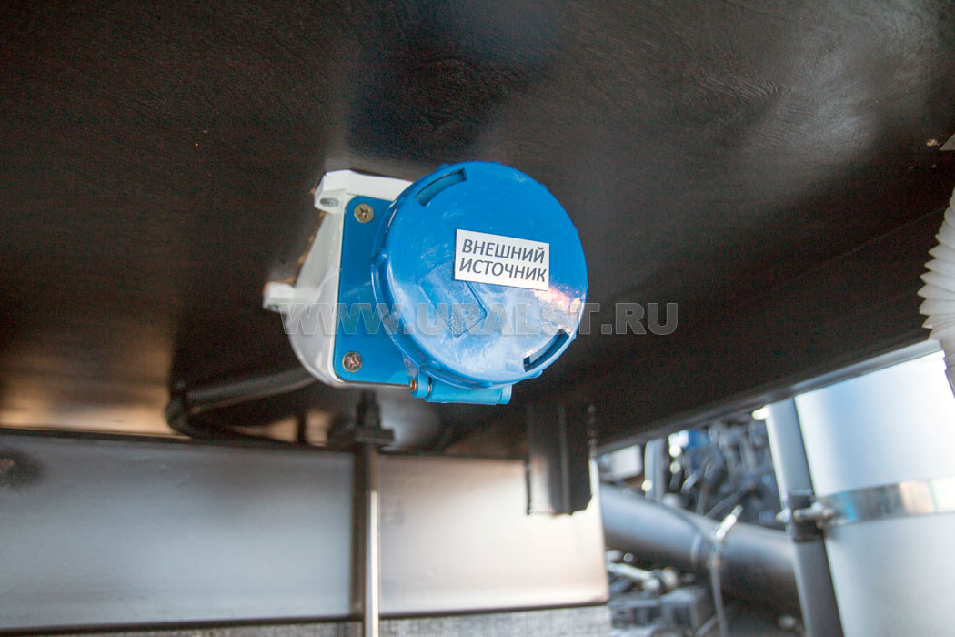 Питание фургона Столовой осуществляется от бортовой сети автомобиля (напряжение 24В постоянного тока подается из электрической схемы базового автомобиля), а также от внешнего источника питания, для подключения которого предусмотрен специальный разъем.