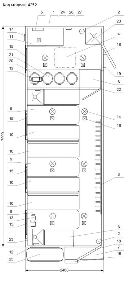 Отсек-столовая и отсек-выдачи разделены распашной дверью.Организация бортовой электросети
