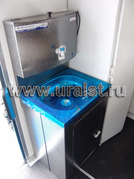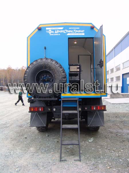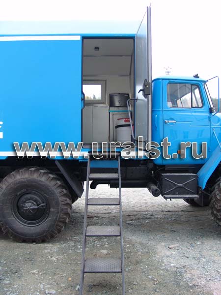 Мобильная столовая на шасси автомобиля Урал 4320 предназначена для обеспечения горячим питанием бригад на месте проведения работ.