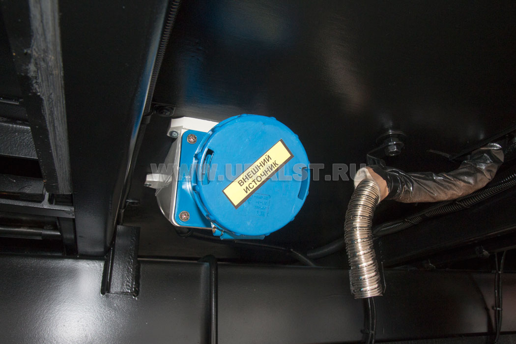 Питание фургона Столовой осуществляется от бортовой сети автомобиля (напряжение 24В постоянного тока подается из электрической схемы базового автомобиля), а также от внешнего источника питания, для подключения которого предусмотрен специальный разъем.
