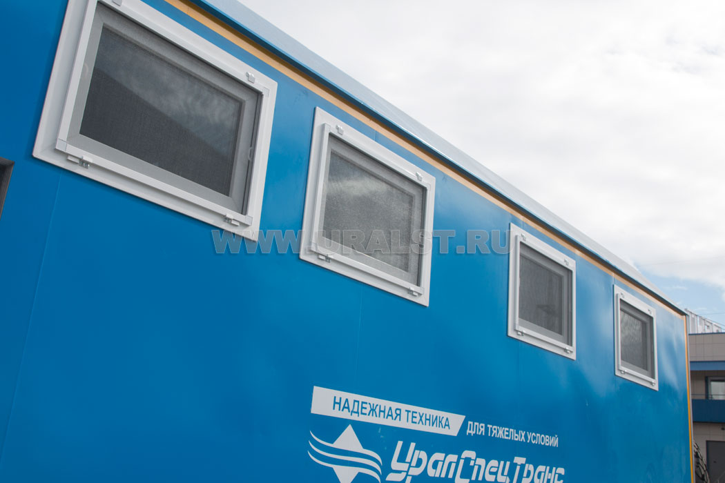 Полевая кухня оборудована евроокнами с форточками изготовлеными с применением двойного герметичного стеклопакета из травмобезопасного стекла с уплонителем.