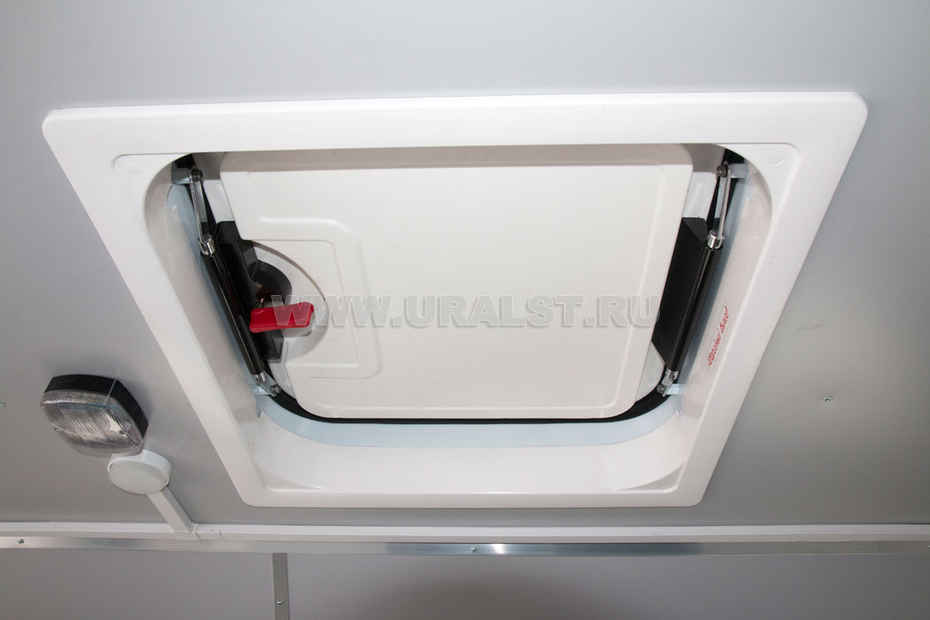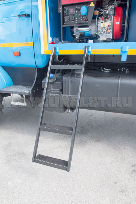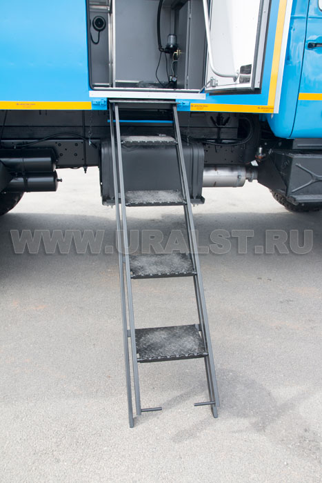 Вход персонала внутрь фургона осуществляется по выдвижному трапу. Для удобства и экономии пространства трап в транспортном положении убираются в нишу под полом автофургона. Конструкция предусматривает широкие ступеньки, по которым легче производить спуск и подъем. Ступеньки трапа изготовлены из стального листа с рифленой поверхностью, что исключает случайное соскальзование ноги.