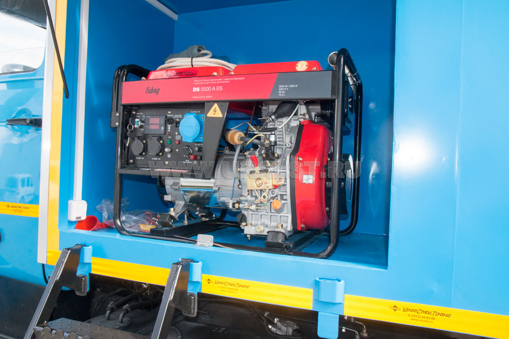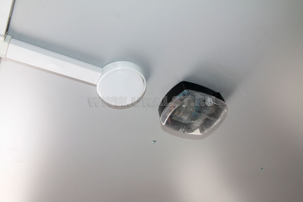 Фургон комплектуются необходимым количеством светильников: обычно используются пыле- и влагозащищенные люминесцентные светильники. Возможна установка специальных светильников, исходя из требований для различных классов пожаровзрывобезопасности помещений.