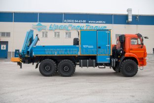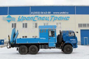 Грузопассажирский автомобиль, 6+2 мест, открытая бортовая платформа, категория С, КМУ ИМ-150N (14,3 тн/м, 6100 кг на 1,69 м, 8,1 м), 6х6, 300 л.с., спальное место, опоры КМУ вверх
