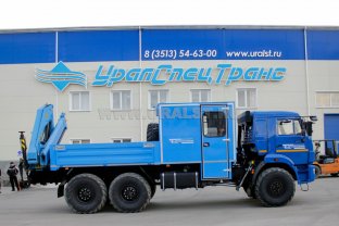Грузопассажирский автомобиль, 6+2 мест, открытая бортовая платформа, категория С, КМУ ИМ-55 (5,12 тн/м, 2050 кг на 2,5 м, 6,78 м), 6х6, 300 л.с., дв. 740, КП ZF9, сп. место