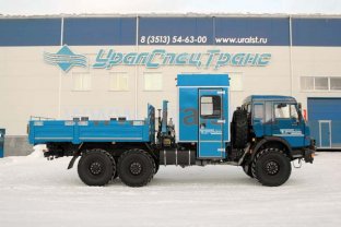 Грузопассажирский автомобиль, 6+2 мест, открытая бортовая платформа, категория С, КМУ ИМ-20 (1,83 тн/м, 990 кг на 1,85 м, 3,57 м), 6х6, 300л.с., дв. 740, КП 154, спальное место