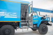 Еще одной особенностью мастерской является откидная и съемная лестницы, по которым осуществляется вход персонала в отсеки ГПА. Для удобства и экономии пространства съемная лестница в транспортном положении крепится специальными кронштейнами к верстаку. Конструкция лестниц предусматривает широкие ступеньки, по которым легче производить спуск и подъем. Ступеньки имеют рифленую поверхность, что делает их травмобезопасными.