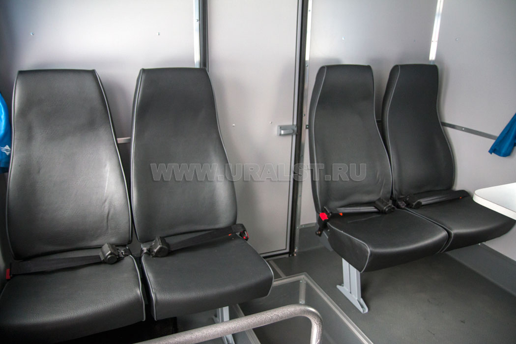 Пассажирский отсек рассчитан на размещение бригады из 6 человек в салоне кузова-фургона. Отсек оборудован тремя двухместными пассажирскими сиденьями с ремнями безопасности и столом.