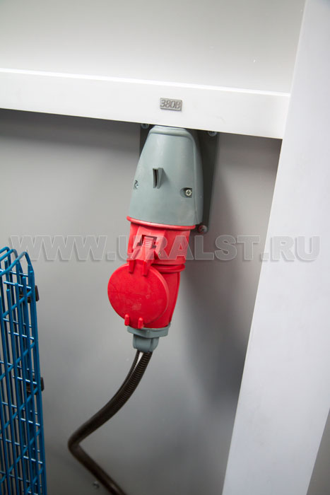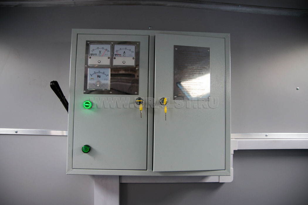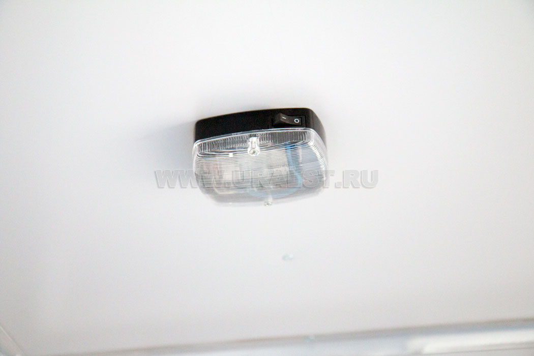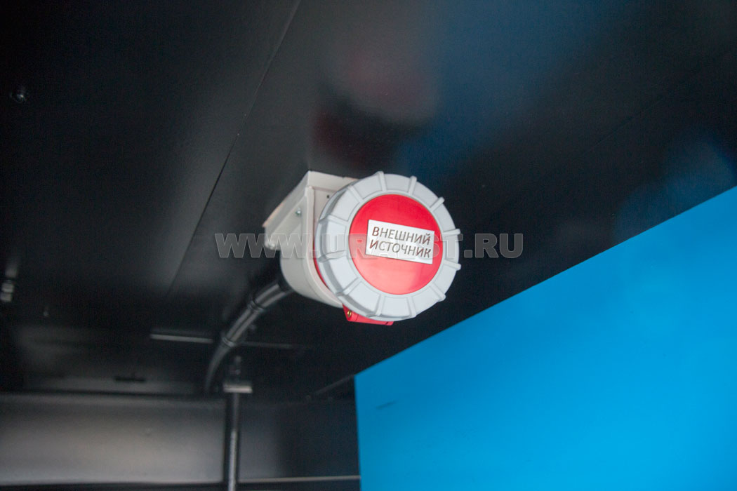 Фургон оборудован розетками для подключения потребителей 220 и 380V. Для работы в темное время суток все рабочие места фургона оборудованы плафонами освещения.