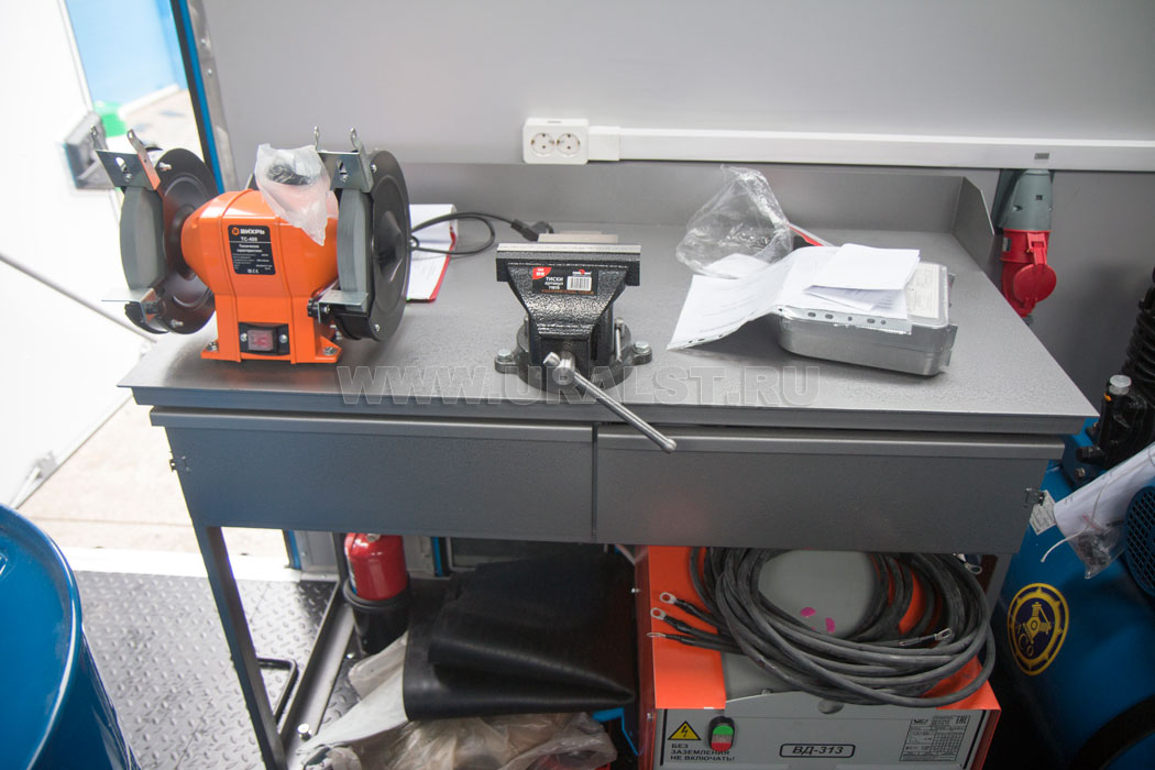 Планировка и расположение оборудования произведены с учетом максимально полезного использования пространства масерской и удобства работы персонала. Все оборудование и инструмент надежно закреплены на штатных местах.
