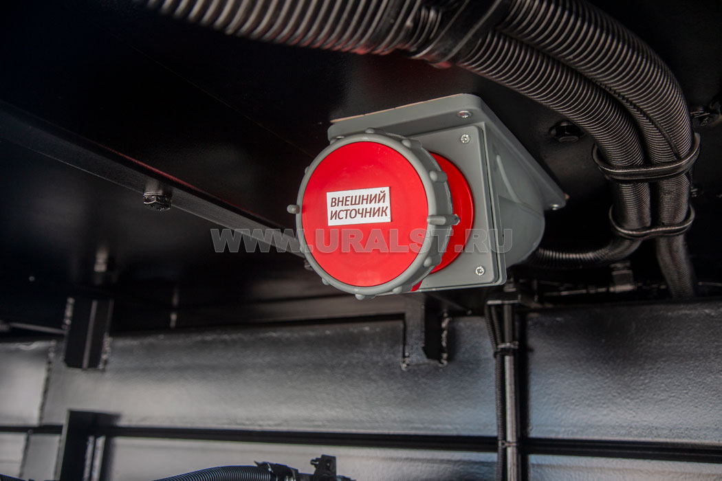 Питание оборудования ПАРМ Камаз осуществляется от генератора мощностью 50 кВА установленного на раме автомобиля под кузовом-фургоном, а также от внешнего источника питания, для подключения которого предусмотрен специальный разъем.