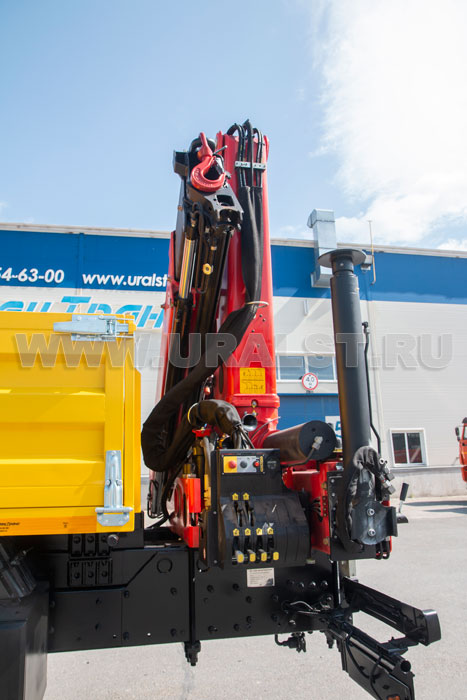 На заднем свесе автомобиля Камаз ПАРМ установлен кран-манипулятор PK-15500А обеспечивающий проведение грузоподъемных работ с весом до 6,1 тонны.