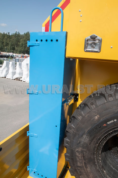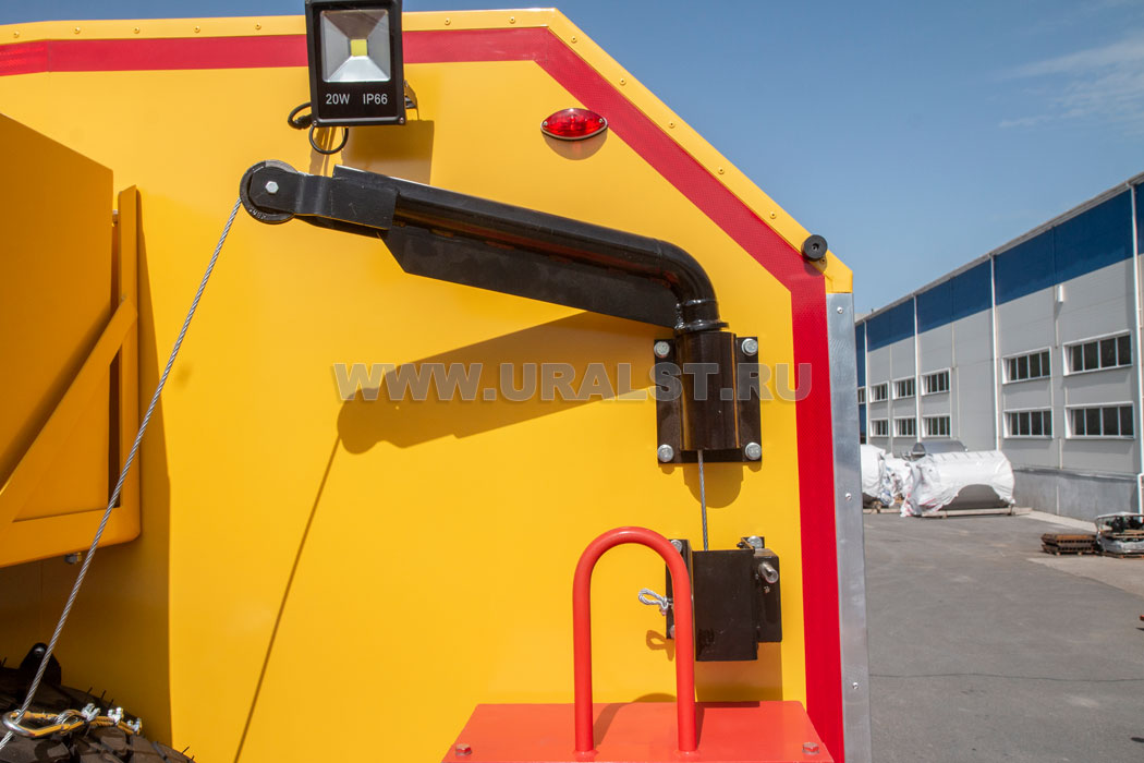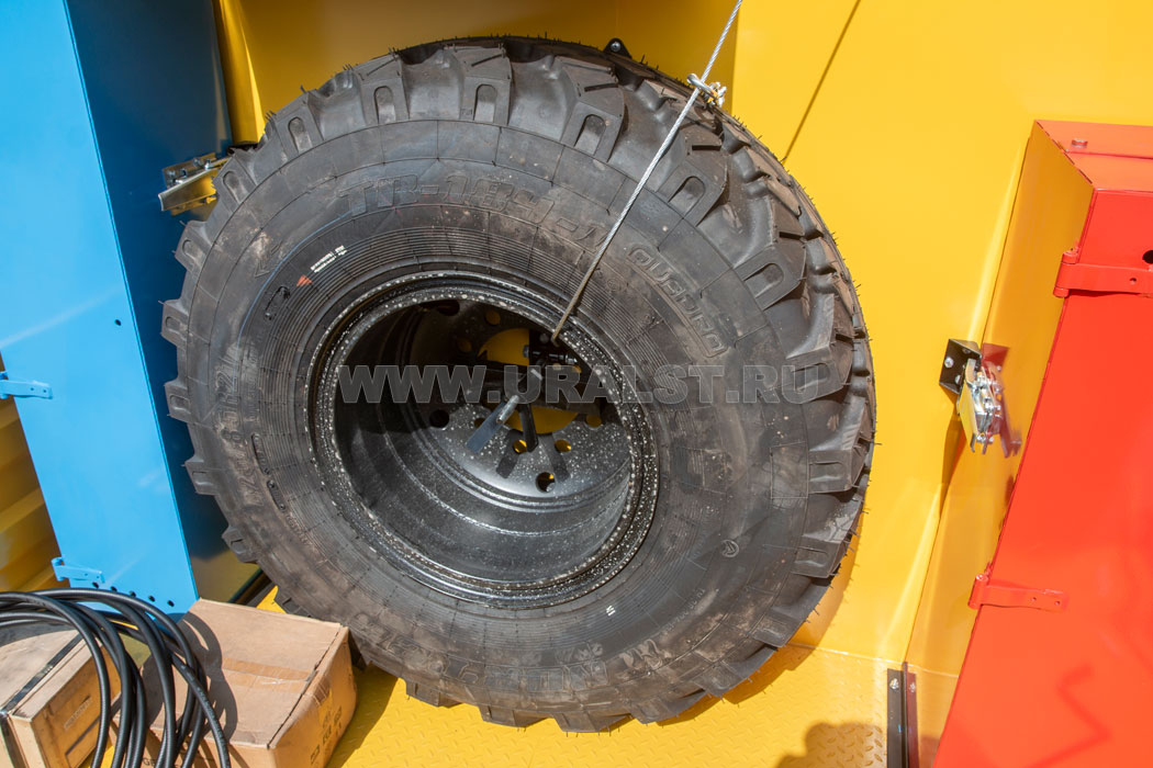 Для избежания перемещения груза во время транспортировки предусмотрены специальные петли для увязки груза. Также на площадке расположены контейнеры для транспортировки и временного хранения газосварочных баллонов.