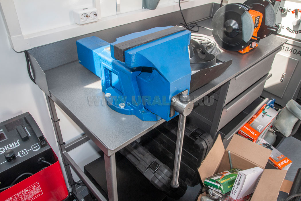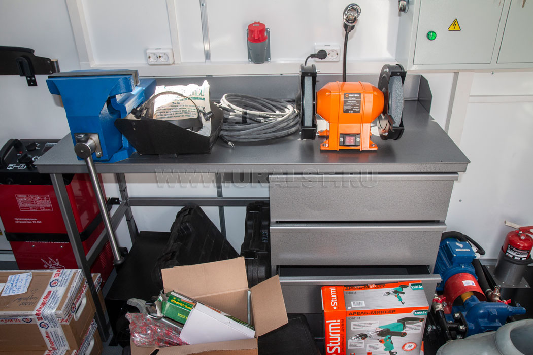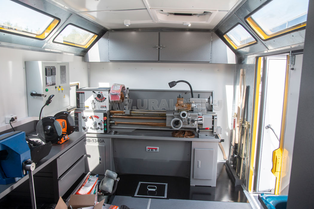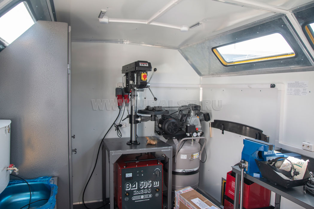 Планировка и расположение оборудования произведены с учетом максимально полезного использования пространства мастерской и удобства работы персонала. Все оборудование и инструмент надежно закреплены на штатных местах.