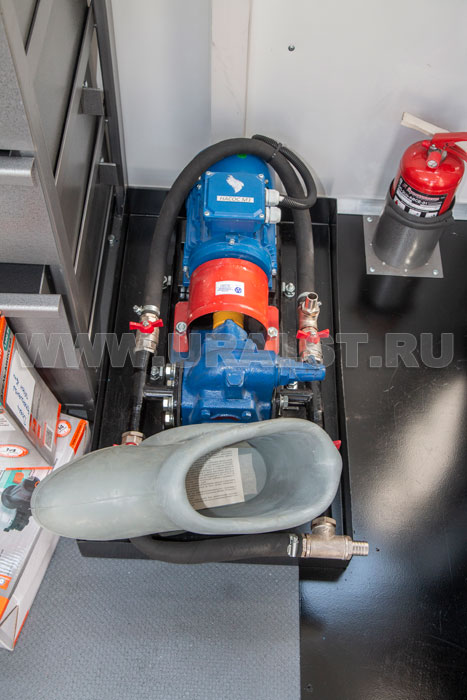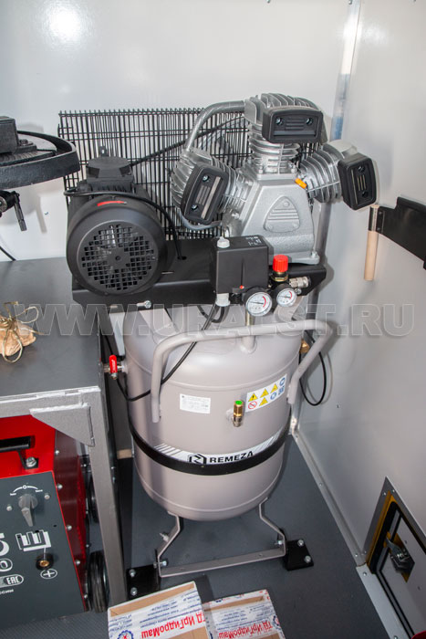 Вход в ремонтный отсек осуществляется по двухсекционной раскладной лестнице. Для удобства и экономии пространства лестница в транспортном положении убирается в нишу под полом кузова-фургона. Конструкция лестницы предусматривает широкие ступеньки, по которым легче производить спуск и подъем. Ступеньки изготовлены из стального рифленого листа, что исключает случайное соскальзывание ноги.