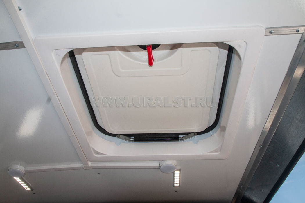 Кузов-фургон ПАРМ оснащен аварийным люком обеспечивающим большую проветриваемость салона, в случае необходимости используется как аварийно-эвакуационный люк.