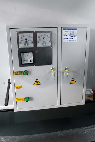 Питание оборудования передвижной ремонтной мастерской осуществляется от генератора мощностью 25,6 кВт и внешнего источника питания, к которому предусмотрен специальный разъем. Защита потребителей и цепей 380В и 220В от перегрузок и короткого замыкания обеспечивается соответствующими автоматическими выключателями и модулем защитного отключения установленым в шкафу управления.