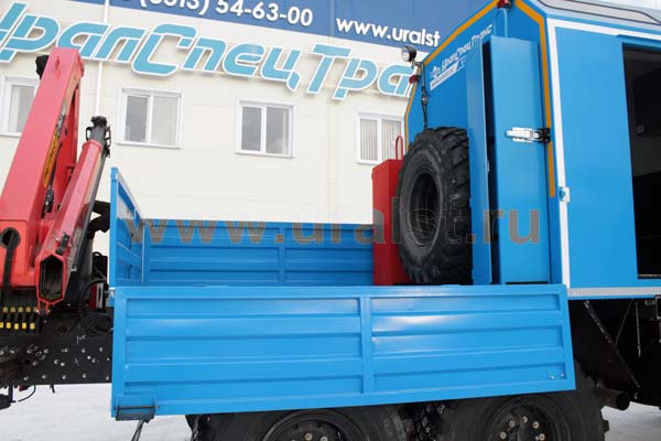 На заднем свесе ПАРМ смонтирован манипулятор Palfinger PK-8500А для проведения грузоподъемных работ весом до 3,3 тонн.