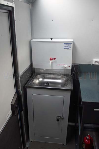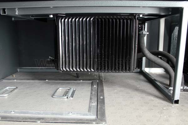Также в мастерской установлены автономный воздушный отопитель и отопитель от системы охлаждения ДВС, который выполняет функцию поддержания необходимой температуры. Воздушный отопитель использует собственный источник питания и независим от штатной системы отопления.