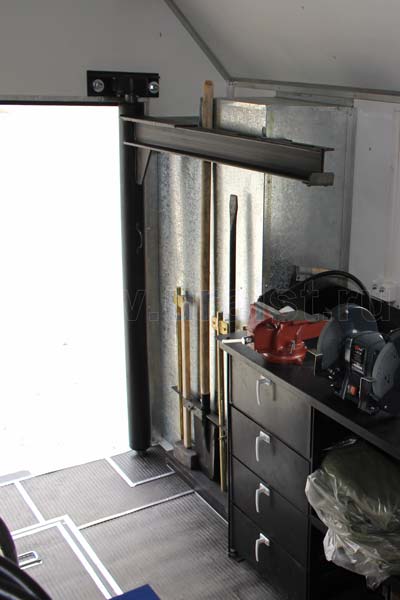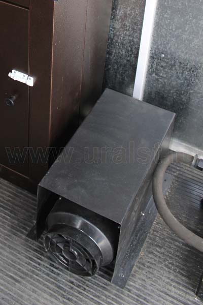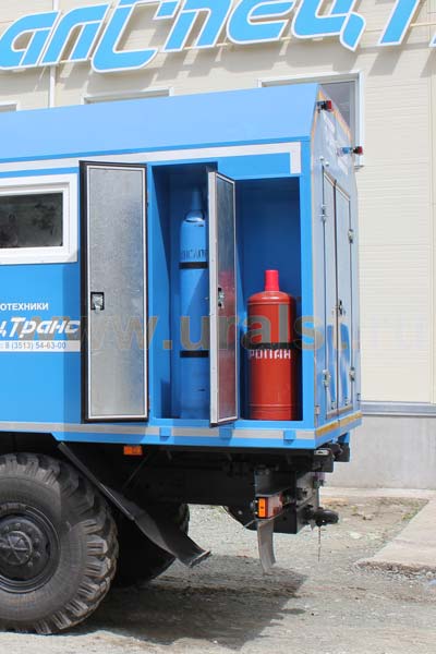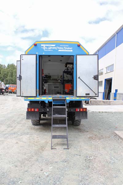 Внутренняя отделка грузового отсека выполнена промышленным пластиком. Нижняя часть стен обшита оцинкованным стальным листом, пол покрыт рифленой резиной. Такой вариант отделки более практичен для ремонтных работ. Для большей освещенности фургона оборудован окнами с форточкой с двойным остеклением и травмобезопасным стеклом. Для увеличения тепло- и шумоизоляции проемы дверей окантовываются двойным уплотнителем. Для более комфортабельных условий ремонтный отсек оснащен автономным воздушным отопителем.