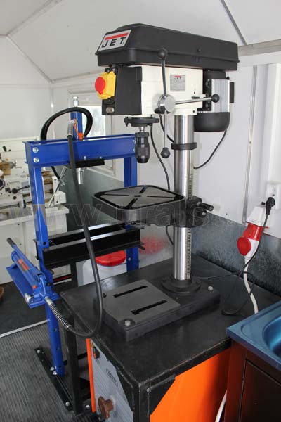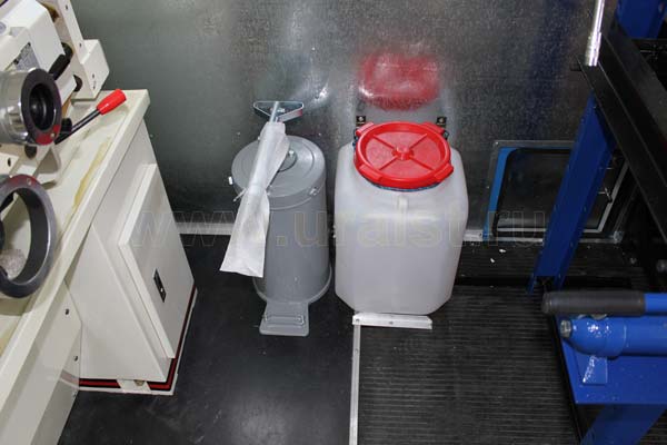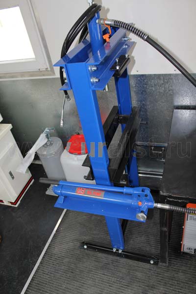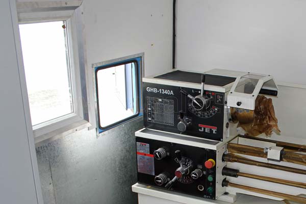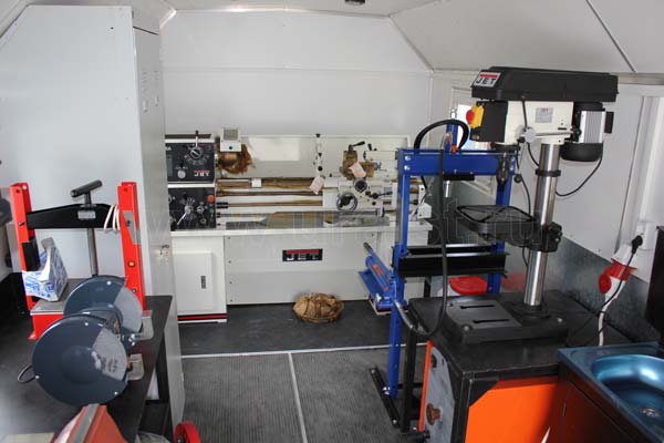 Оригинальным техническим решением в конструкции передвижной авторемонтной мастерской является перемещение пропанового и кислородного баллонов из кузова-фургона в специальные ниши, расположенные с наружной стороны. А для быстрого доступа и удобства эксплуатации оборудования в кузове-фургоне предусмотрены специальные люки: люк для токарного станка и люк для сварочного выпрямителя.