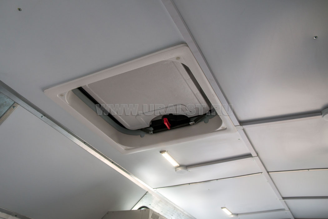 Пол фургона изготовлен из бакелизированной фанеры с утеплением пенофлексом толщиной 30 мм и высокопрочного многослойного полимерного покрытия на текстильной основе с противоскользящим эффектом. Проемы дверей окантованы тройным контуром высококачественного уплотнителя.